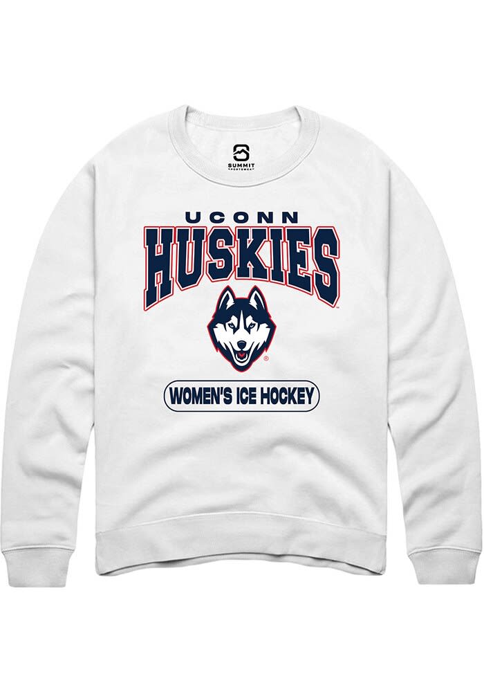 UConn Huskies Unisex White Womens Ice Hockey Crew Sweatshirt