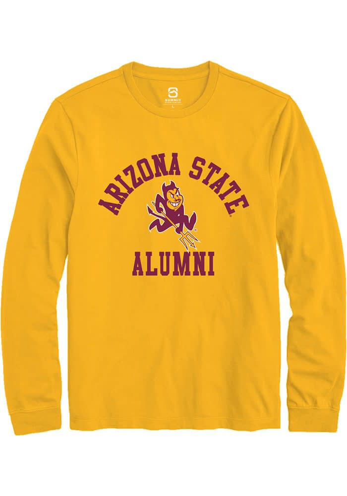 Show off your team pride in this Arizona State Sun Devils Gold Alumni Arch Long Sleeve T Shirt! This Arizona State Long Sleeve Tee features a digitally printed graphic. Make sure everyone knows you root for the Sun Devils with this Gold Arizona State T Shirt. Go Devils!