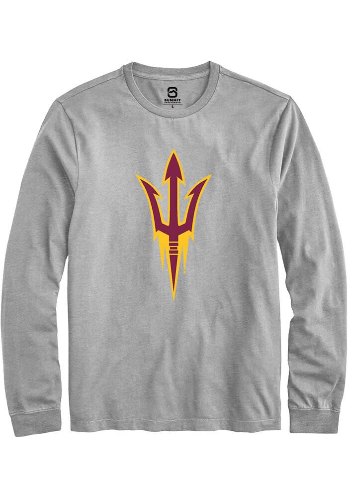 Show off your team pride in this Arizona State Sun Devils Grey Primary Logo Long Sleeve T Shirt! This Arizona State Long Sleeve Tee features a digitally printed graphic. Make sure everyone knows you root for the Sun Devils with this Grey Arizona State T Shirt. Go Devils!