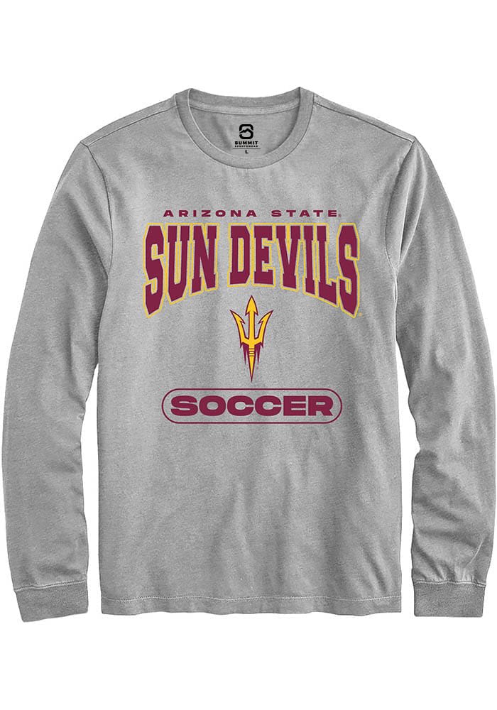Show off your team pride in this Arizona State Sun Devils Grey Soccer Long Sleeve T Shirt! This Arizona State Long Sleeve Tee features a digitally printed graphic. Make sure everyone knows you root for the Sun Devils with this Grey Arizona State T Shirt. Go Devils!