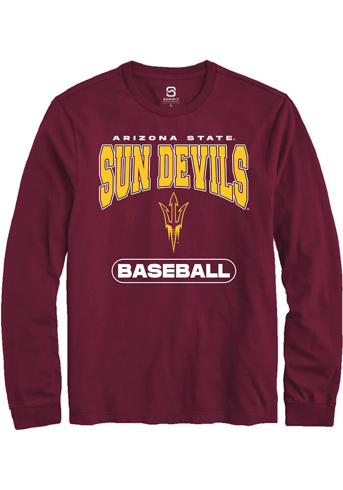 Show off your team pride in this Arizona State Sun Devils Maroon Baseball Long Sleeve T Shirt! This Arizona State Long Sleeve Tee features a digitally printed graphic. Make sure everyone knows you root for the Sun Devils with this Maroon Arizona State T Shirt. Go Devils!