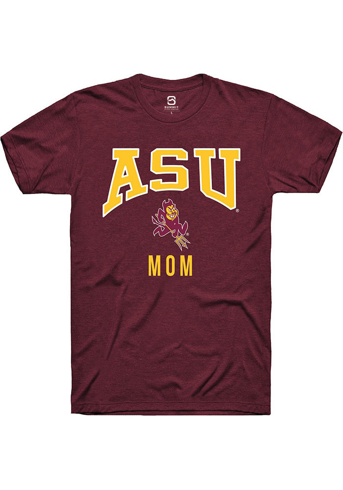 Show off your team pride in this Arizona State Sun Devils Maroon Mom Short Sleeve T Shirt! This Arizona State Short Sleeve Tee features a digitally printed graphic. Make sure everyone knows you root for the Sun Devils with this Maroon Arizona State T Shirt. Go Devils!