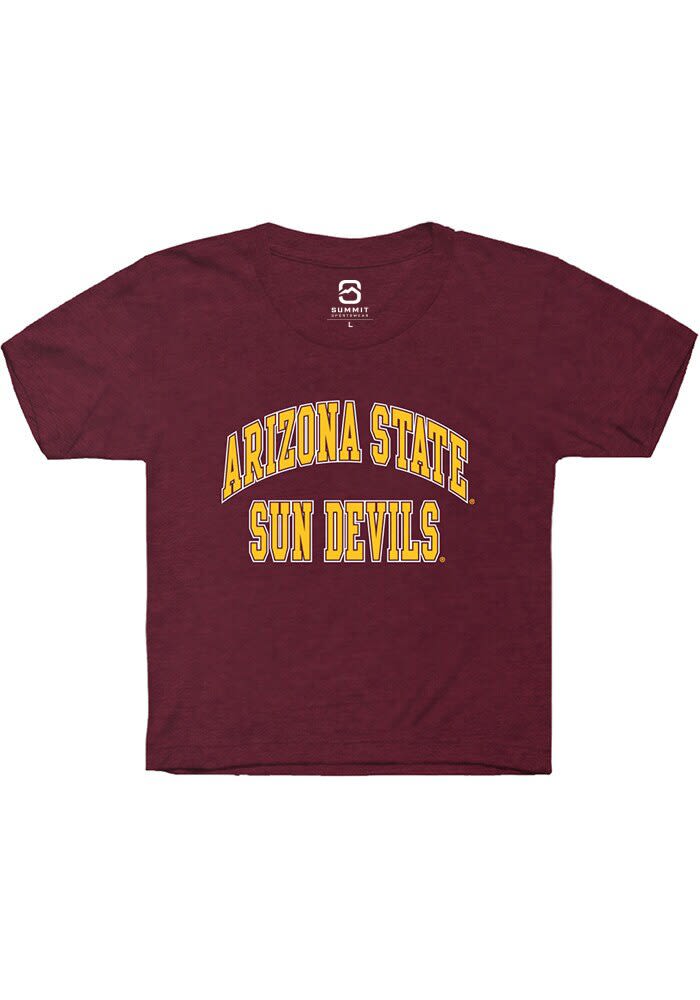 Your future Arizona State Sun Devils will be ready for the game with this Arizona State Sun Devils Youth Maroon Short Sleeve Tee. This Arch Stack T-Shirt features a digitally printed graphic.