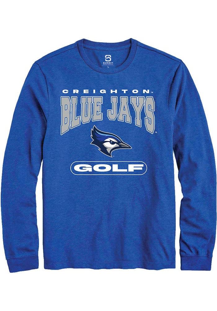 Show off your team pride in this Creighton Bluejays Blue Golf Long Sleeve T Shirt! This Creighton Long Sleeve Tee features a digitally printed graphic. Make sure everyone knows you root for the Bluejays with this Blue Creighton T Shirt. Go Bluejays!!