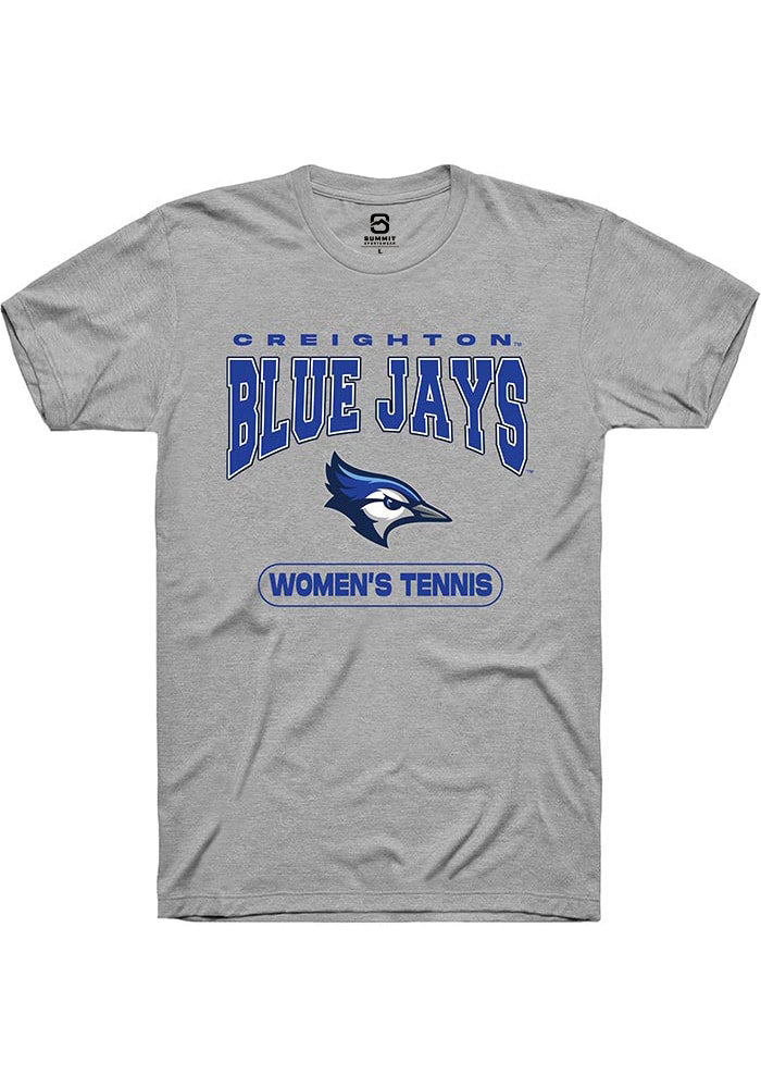 Show off your team pride in this Creighton Bluejays Grey Women's Tennis Short Sleeve T Shirt! This Creighton Short Sleeve Tee features a digitally printed graphic. Make sure everyone knows you root for the Bluejays with this Grey Creighton T Shirt. Go Bluejays!!