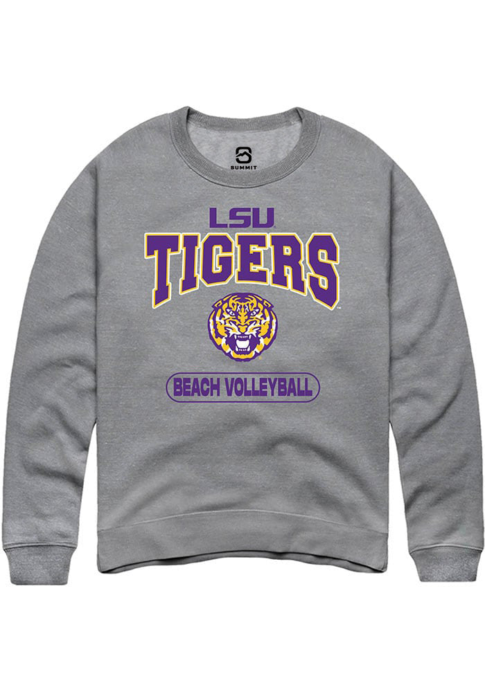 LSU Tigers Mens Grey Beach Volleyball Long Sleeve Crew Sweatshirt