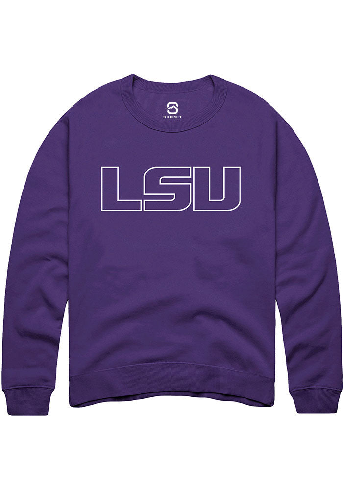 LSU Tigers Mens Purple Outlined Primary Logo Long Sleeve Crew Sweatshirt