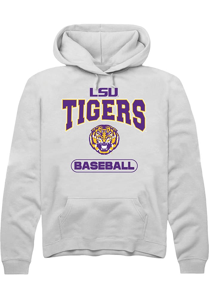 Put your Tigers spirit on display in this LSU Tigers Long Sleeve Hoodie! You'll be cozy on game day in this LSU Mens White Baseball Hooded Sweatshirt. This Tigers Long Sleeve Hoodie features a digitally printed graphic. Wear your LSU Tigers spirit with pride in this great Mens Hooded Sweatshirt!