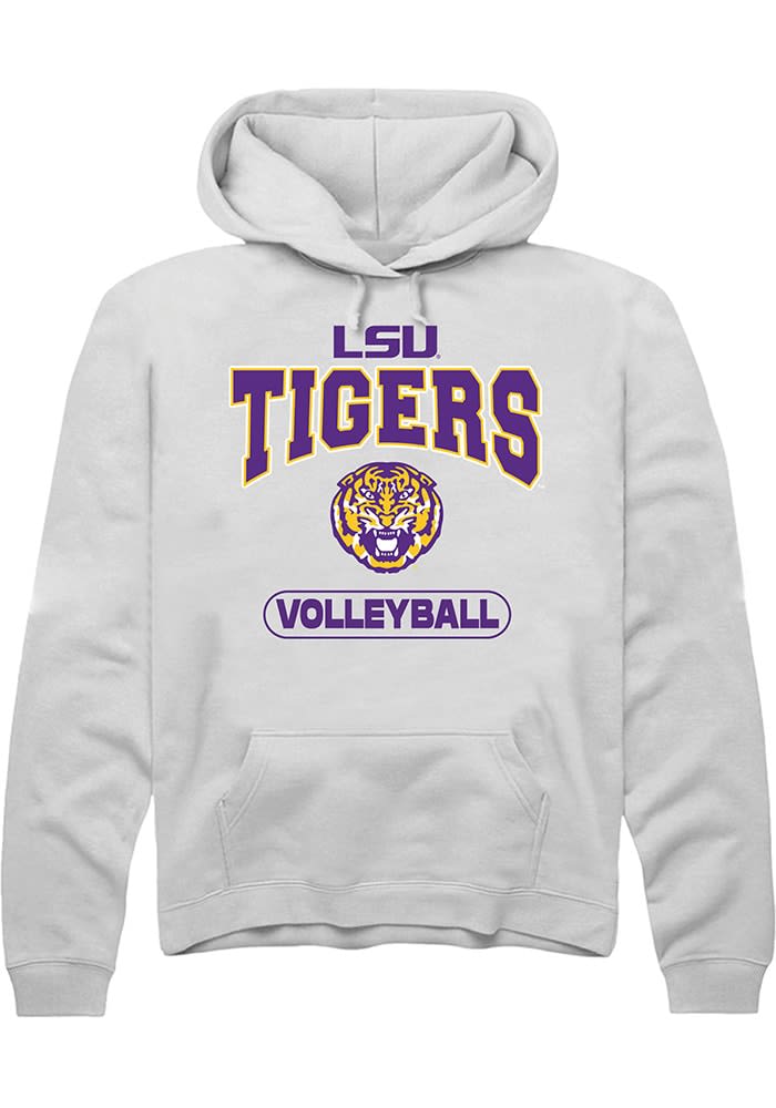 LSU Tigers Mens White Volleyball Long Sleeve Hoodie