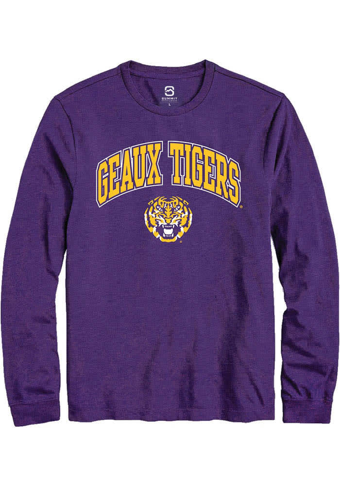 Show off your team pride in this LSU Tigers Purple Arch Logo Long Sleeve T Shirt! This LSU Long Sleeve Tee features a digitally printed graphic. Make sure everyone knows you root for the Tigers with this Purple LSU T Shirt. Fight, Tigers!