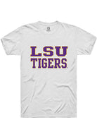 LSU Tigers White Straight Block Short Sleeve T Shirt