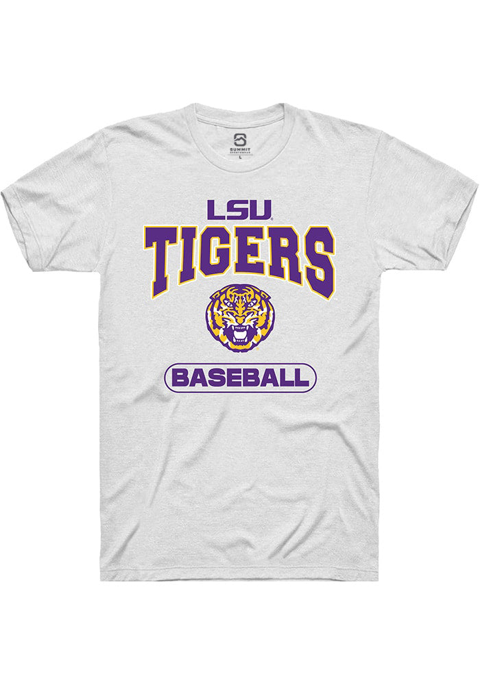 LSU Tigers White Wordmark Baseball Short Sleeve T Shirt