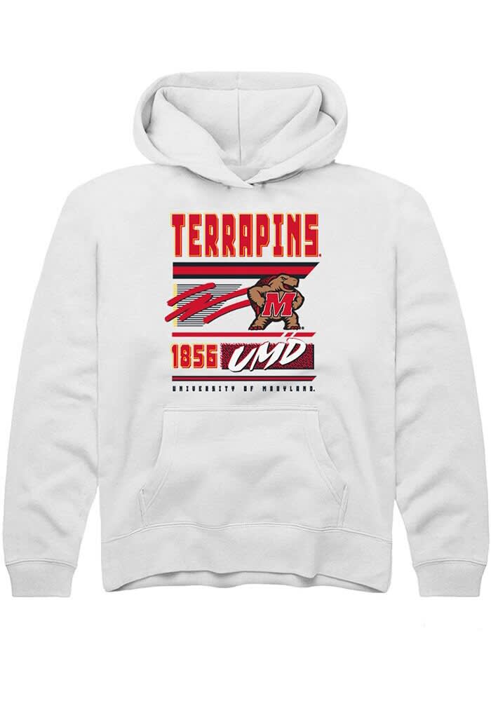 Those cold nights at the game won't keep your little Maryland fan from cheering on the team in Maryland Terrapins Long Sleeve Hoodie! Give them this Maryland Terrapins Youth White Retro Hooded Sweatshirt to keep warm in the stands. This Terrapins Long Sleeve Hoodie features a digitally printed graphic.