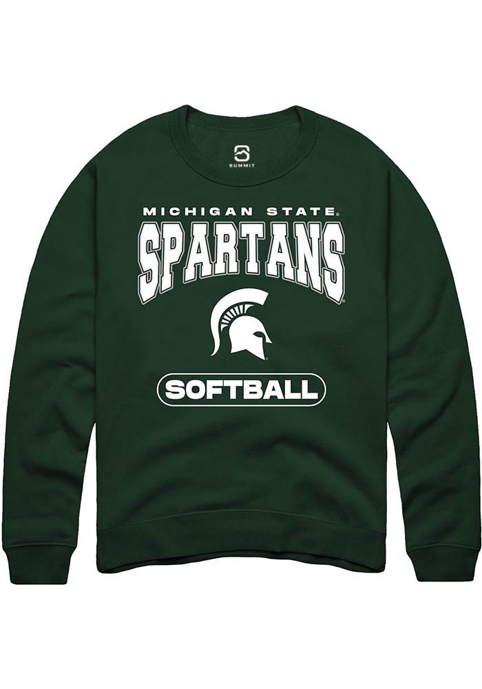 Michigan State Spartans Mens Green Softball Long Sleeve Crew Sweatshirt