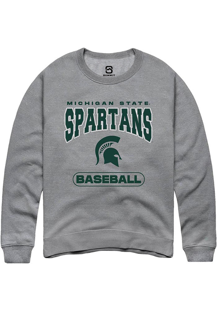 Michigan State Spartans Mens Grey Baseball Long Sleeve Crew Sweatshirt