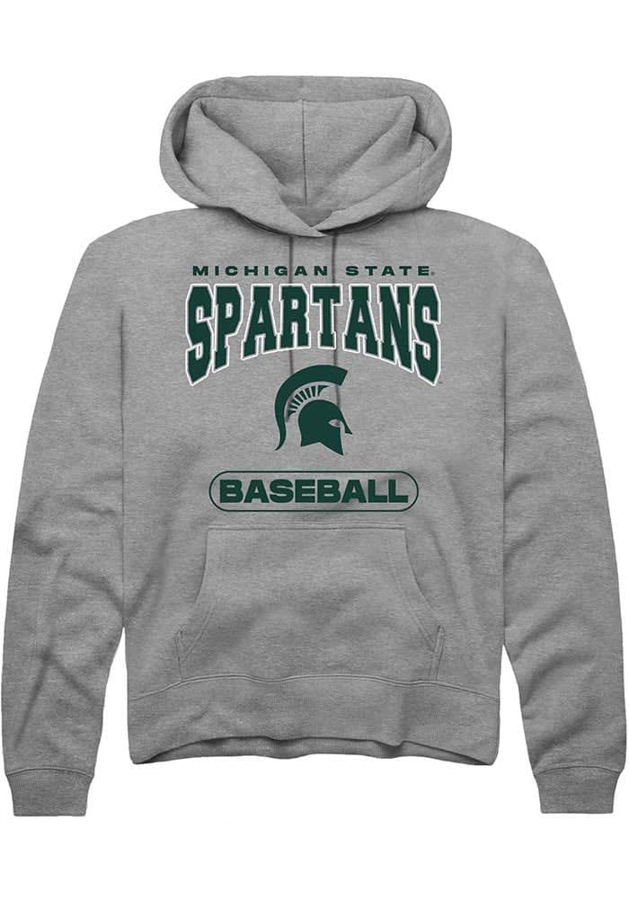 Michigan State Spartans Mens Grey Baseball Long Sleeve Hoodie