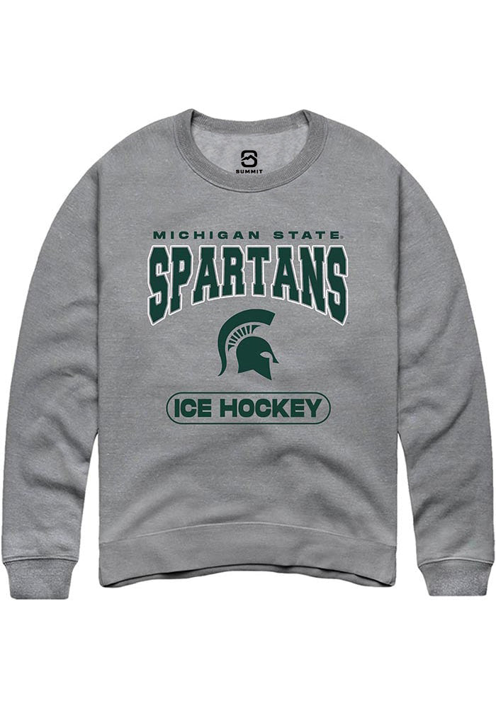 Michigan State Spartans Mens Grey Ice Hockey Long Sleeve Crew Sweatshirt
