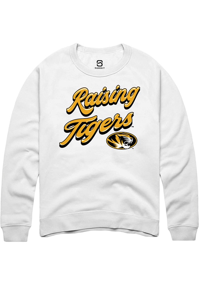 Missouri Tigers Mens White RAISING MASCOTS Long Sleeve Crew Sweatshirt