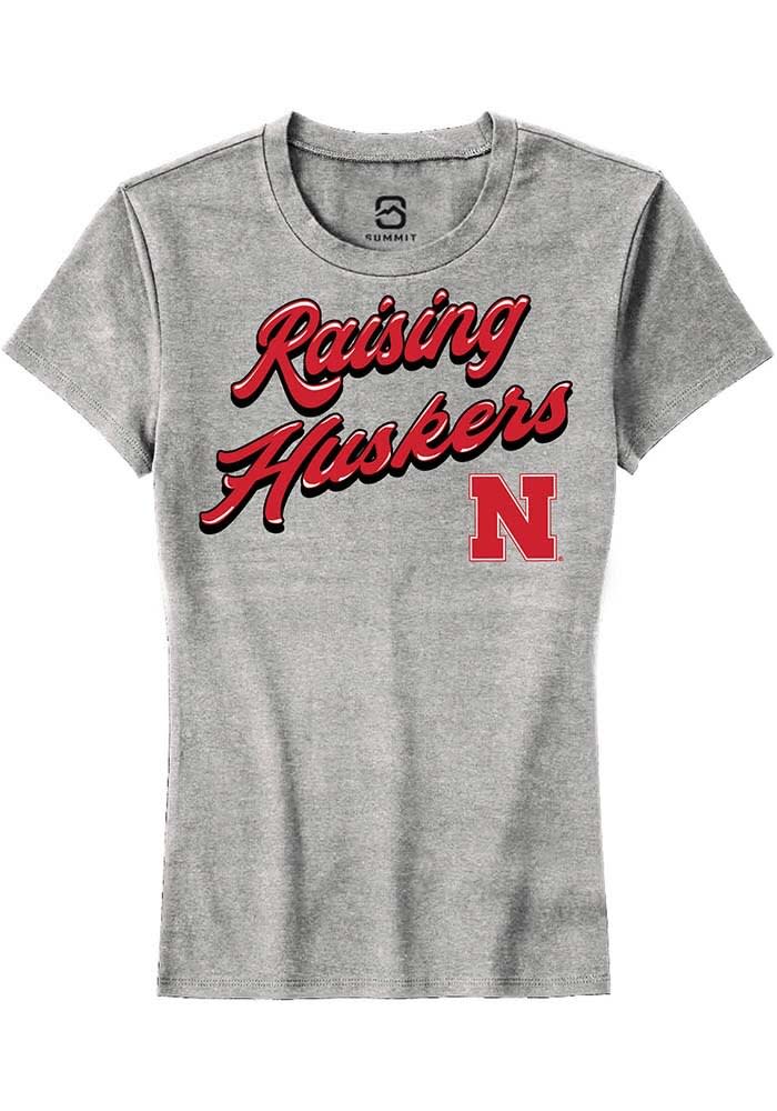 Nebraska Cornhuskers Womens Grey RAISING MASCOTS Short Sleeve T-Shirt