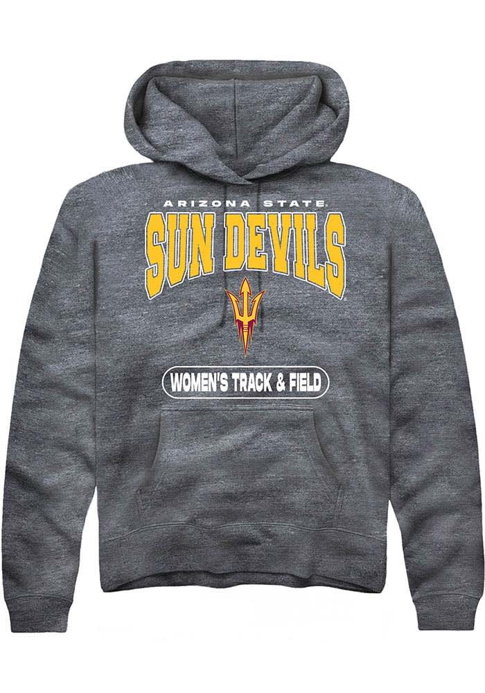 Put your Sun Devils spirit on display in this Arizona State Sun Devils Long Sleeve Hoodie! You'll be cozy on game day in this Arizona State Mens Charcoal Womens Track and Field Hooded Sweatshirt. This Sun Devils Long Sleeve Hoodie features a digitally printed graphic. Wear your Arizona State Sun Devils spirit with pride in this great Mens Hooded Sweatshirt!