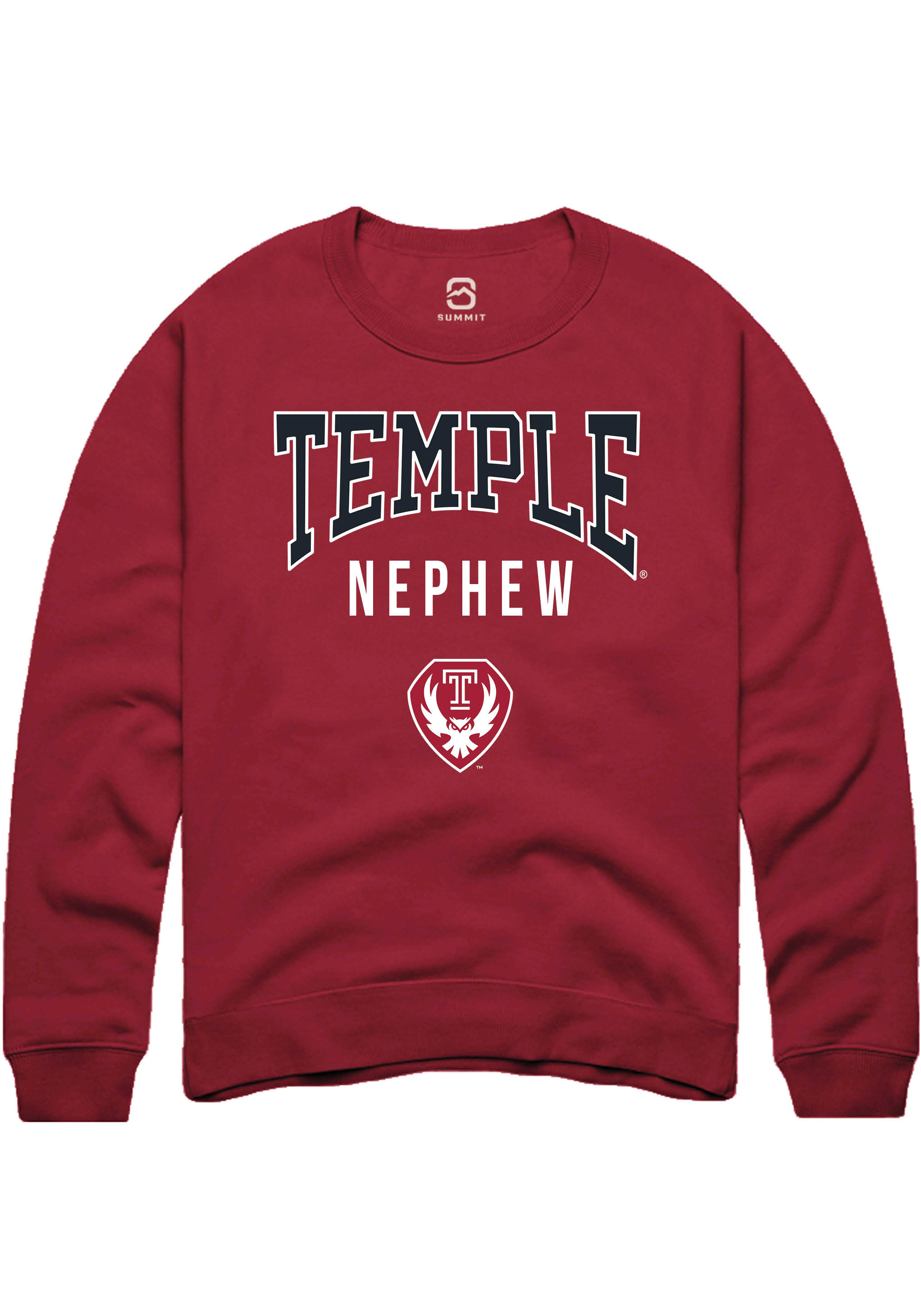 Temple Owls Mens Cardinal Nephew Long Sleeve Crew Sweatshirt