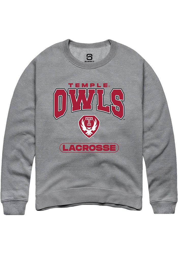 Temple Owls Mens Grey Lacrosse Long Sleeve Crew Sweatshirt