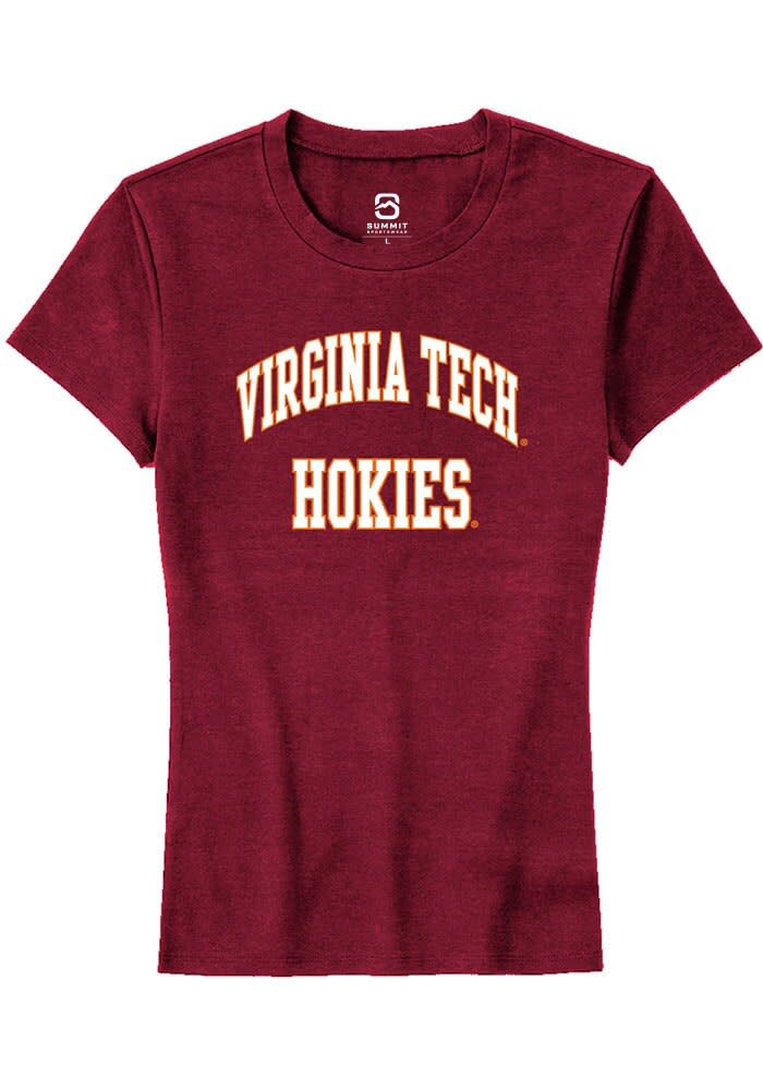 Virginia Tech Hokies Womens Maroon Arch Stack Short Sleeve T-Shirt