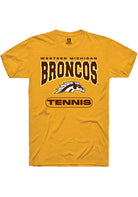 Show off your team pride in this Western Michigan Broncos Gold Tennis Short Sleeve T Shirt! This WMU Broncos Short Sleeve Tee features a digitally printed graphic. Make sure everyone knows you root for the Broncos with this Gold WMU Broncos T Shirt. Go Broncos!
