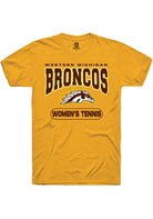 Show off your team pride in this Western Michigan Broncos Gold Womens Tennis Short Sleeve T Shirt! This WMU Broncos Short Sleeve Tee features a digitally printed graphic. Make sure everyone knows you root for the Broncos with this Gold WMU Broncos T Shirt. Go Broncos!