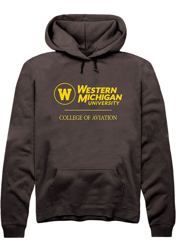 Western Michigan Broncos Mens Brown College of Aviation Logo Long Sleeve Hoodie