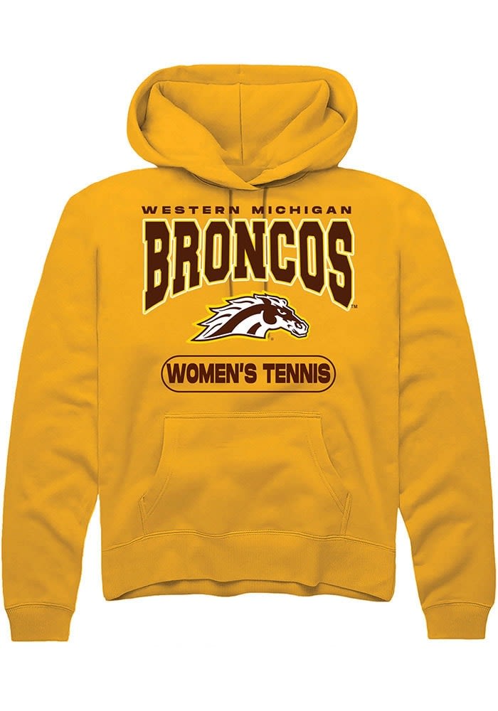 Put your Broncos spirit on display in this Western Michigan Broncos Long Sleeve Hoodie! You'll be cozy on game day in this WMU Broncos Mens Gold Womens Tennis Hooded Sweatshirt. This Broncos Long Sleeve Hoodie features a digitally printed graphic. Wear your Western Michigan Broncos spirit with pride in this great Mens Hooded Sweatshirt!