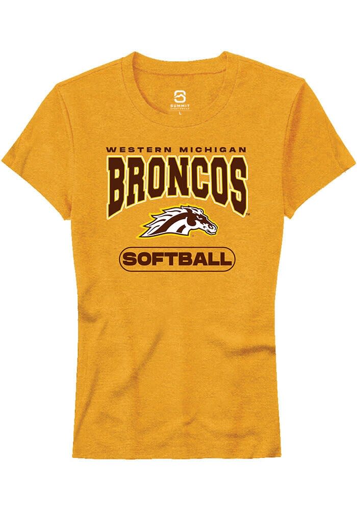 Western Michigan Broncos Womens Gold Softball Short Sleeve T-Shirt